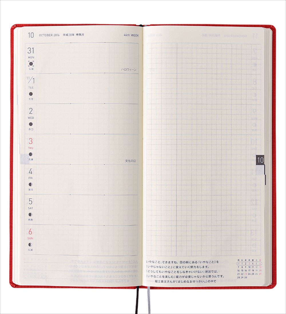 I thought that the paper is too thin, but I do not mind being used while using it, and I'm also looking forward to a nice little word for each page. I will purchase this notebook every year from now on.