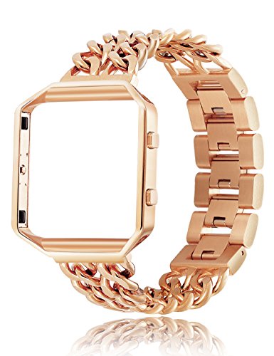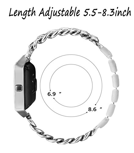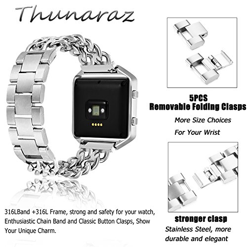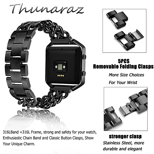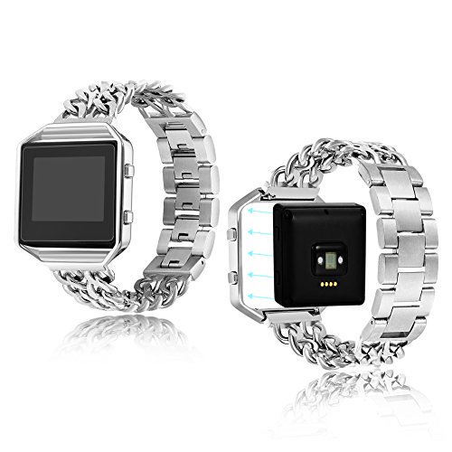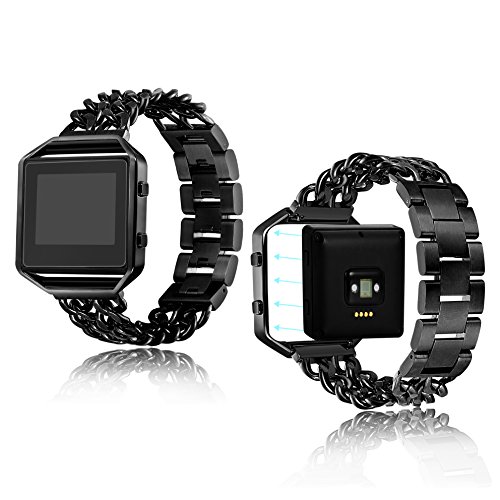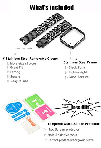 -. Feature : SPECIAL KNOCK DESIGN : 1 Band Come with 5pcs Removable Folding Clasp,Length Adjustable 6.9"-8.6" (Including the length of the Fitbit), Width 0.78", (One Link about 12MM= 0.5"),Easy to Resize the Band, Choose a Better Size For Your Wrist Without Any Tools, More Comfortable and Convenient to Use. / ELEGANT & WONDERFUL REPLACEMENT BAND: Stainless Steel Material, Glossy, Durable and Classy; Unique Chain with Classic Button Clasp, Stylish and Fashinable; 4 Different Colors, Noble Silver-tone, Mysterious Black, Shiny Gold-tone and Eye-catching Rose Gold-tone, A Winderful Accessory for Men or Women, Teens or Seniors. / HIGH QUALITY 316L MATERIAL: Both the band and the frame are made from 316L Stainless Steel.Which is strong and safety for your watch. With Highly Polished Technology, Expensive Looking, Long-time Color Protecting,Decent Weight. Make You Be the Focus at Any Moment, On Every Occasion / PERFECT SET: Buy One Band Strap, You Can Get 1pc Tempered Glass Screen Protector for Fitbit Blaze. And the package come with black velvet bag. This is perfect for gift giving and acting as a travel bag It is worth buying. / WARRANTY: We provide 365 days Money Back or Exchange Guarantee. Any problems on the product, Pls let me know, You will get a better solution.