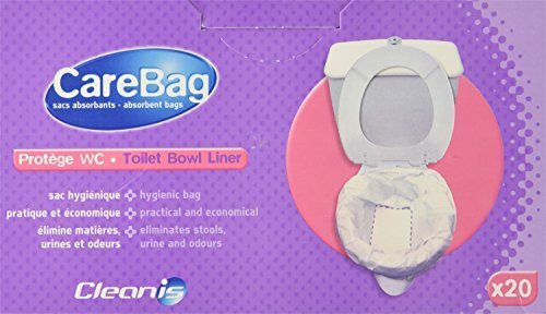 -. Title : Carebag Toilet Bowl Liner with Super Absorbent Pad (Box of 20 liners) by Cleanis