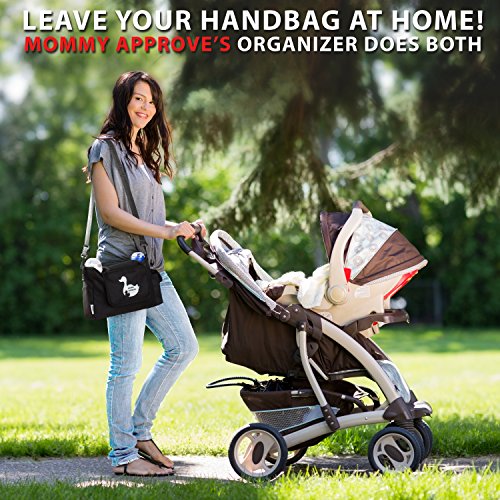 Easily carry around Wet wipes, 3 pacifiers, 2 Sippy cups, 2 diapers, a baby toy, a large purse, your smartphone, car keys, valuables, and more!