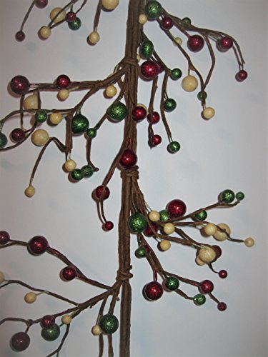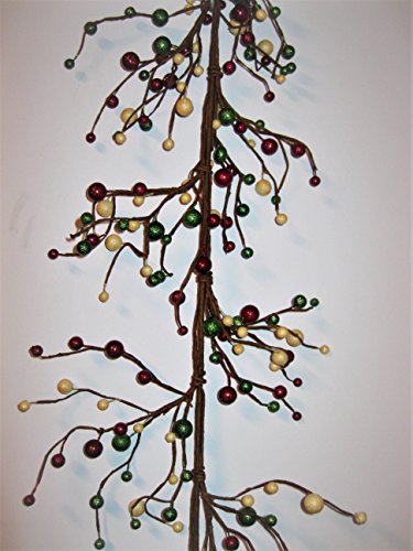 ChristmasTwiggy All-Over Glittered Red, Green, and Cream Balls GARLAND or CANDLE RING PAIR (1, 60 inches)