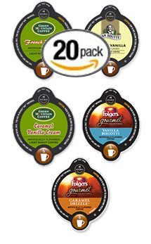 20-COUNT FLAVORED CARAMEL AND VANILLA DELIGHT VUE V-CUPS CUPS FOR KEURIG BREWERS FLAVORED VARIETY PACK FEATURING FOLGERS CARAMEL DRIZZLE, FOLGERS VANILLA BISCOTTI, VAN HOUTTE FRENCH VANILLA, GREEN MOUNTAIN CARAMEL VANILLA CREAM, AND GREEN MOUNTAIN FRENCH VANILLA COFFEE CUPS