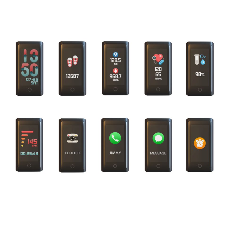 【Body function】 Blood Pressure Measurement · Blood Oxygen Measurement, Heart Rate Gauge, Activity Meter, Moving Route, Automatic Attention of Sitting, Sleep Monitor, Application Incoming Notice such as Telephone, Alarm, Data Synchronization, Data Analysis.