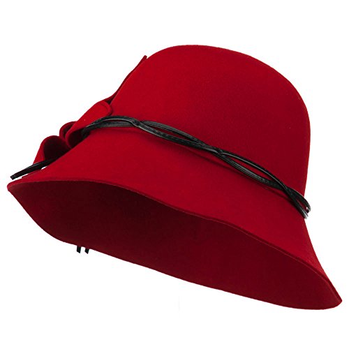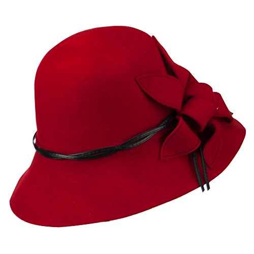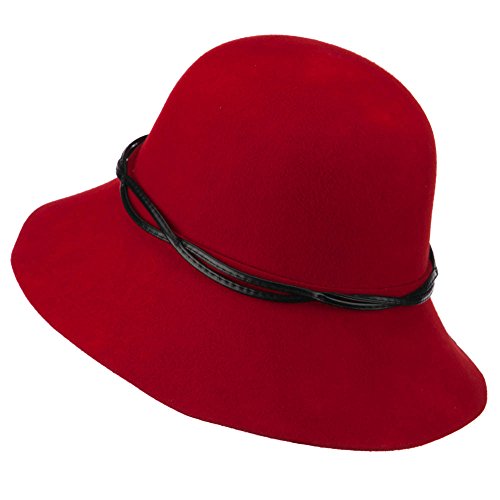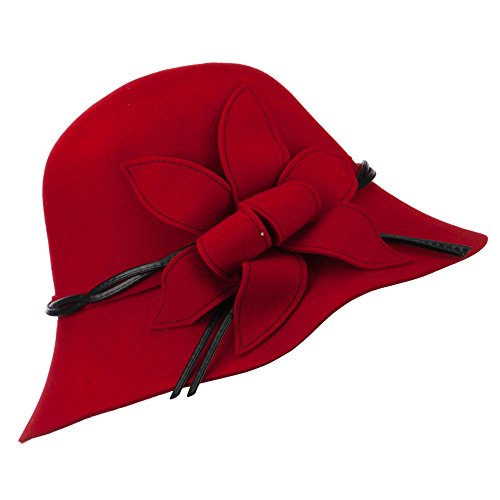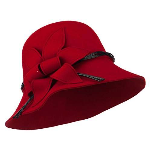 Binding : Apparel Product Description Fashionable wide brim wool cloche for women with classy taste. Top of crown is round. Crown of hat is accented with 2 black thin leather hat bands. Crown is decorated with a large leaf and flower design on one side. Brim is naturally downturned. This stylish ladies cloche is perfect for vacations, trips, parties, weddings, picnics, and walks in the park. Fall and Winter. 11 1/2(W) X 12 1/2(L) X 6 3/4(H) inches. Thick, lightweight, and soft material. Available in different colors and styles. 0