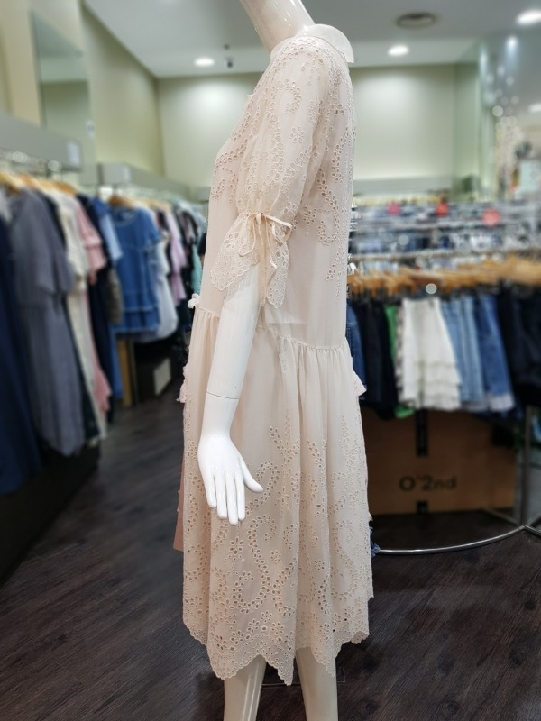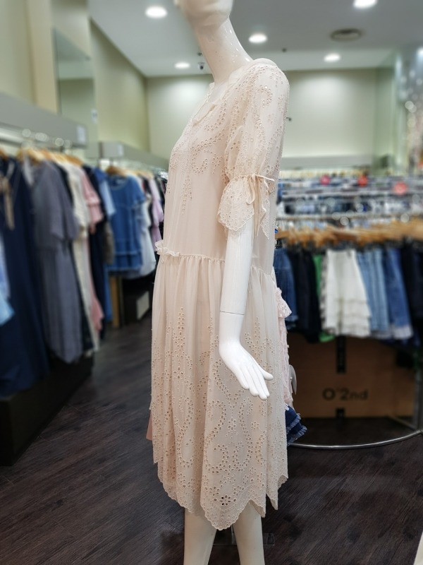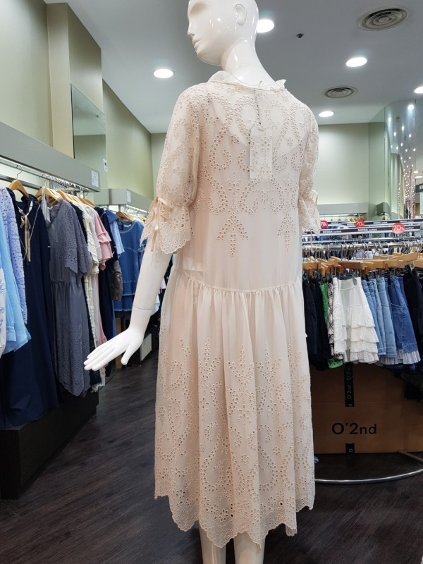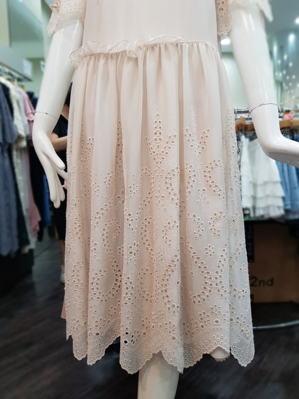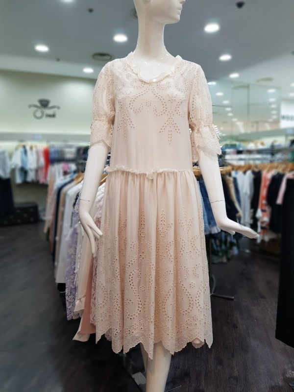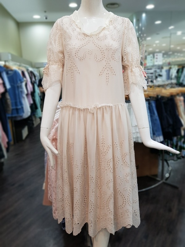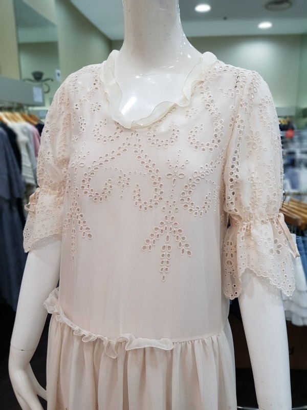 루즈핏으로 속 나시 세트인 원피스로 레이스가 고급스럽게 들어가 있습니다.신축성이 전혀 없고 지퍼가 없는 디자인이기 때문에 정사이즈를 입거나 상체가 있으신분들은 한치수 위에를 입으셔야 합니다.