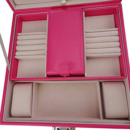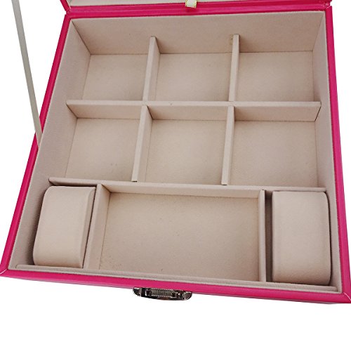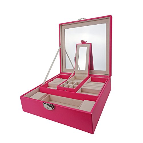 Lanscoe Jewelry Box - PU Leather,Classic Jewelry Organizer , Large Mirror & 2 Trays and Soft Velvet Lining Interior Anti-Scratch with Inside Mirror for Women Teens and Girls Pink