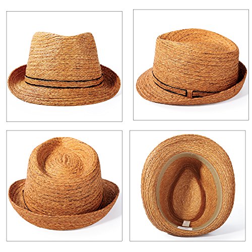 Lightweight and Durable:extremely comfortable Our straw fedora hat is the perfect hat to top off your summer outfits. It is made of 100% paper straw that is lightweight, breathable, and durable. The leather hat band offers a fashion detail to set you apart from the rest. This straw fedora is the hat you need to make your own fashion statement