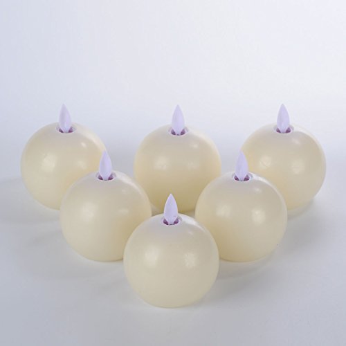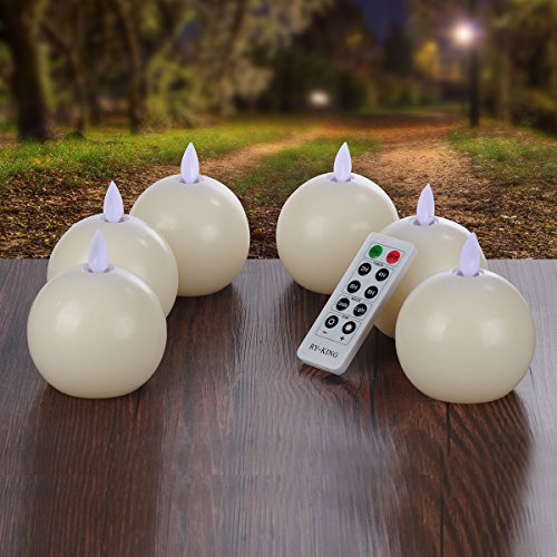 Ry-king Moving Wick Flameless Flicker Round Ball Wax LED Candles Lights with 10-Key Remote Control 2/4/6/8 Hours Timer, Batteries Included, Ivory Color, Set of 6