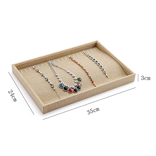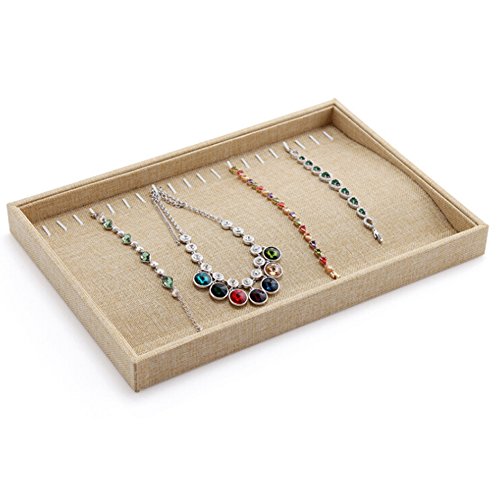 New Wayzon 20 Hooks Jewelry Storage Organizer Tray Necklaces Bracelets Display Container without Cover(Linen)