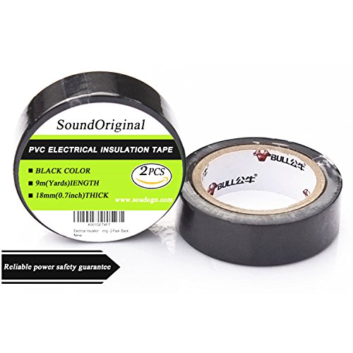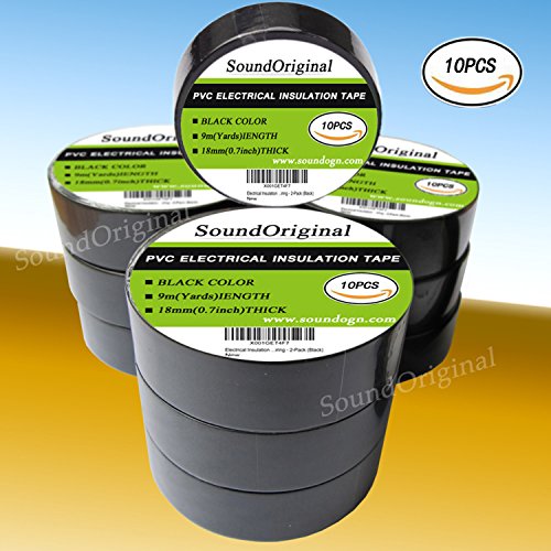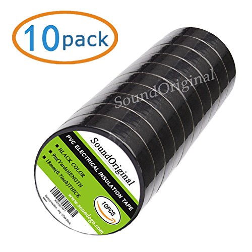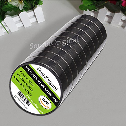 Soundoriginal Black Electrical Tape 10 Pack, Voltage Level 600V Dustproof, Adhesive for General Home Vehicle Auto Car Power Circuit Wiring 3m black