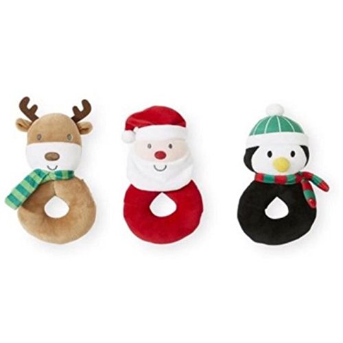 3 Plush Ring Rattles - 1 Reindeer, 1 Santa, 1 Penguin