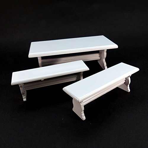 원본상품명: 木製ミニチュア家具セット テ?ブルと長椅子セット 白 DH-033 【ド?ルハウス おままごと イス テ?ブル ディスプレイ】