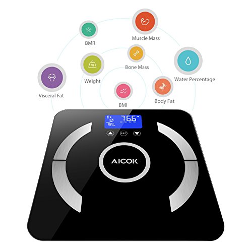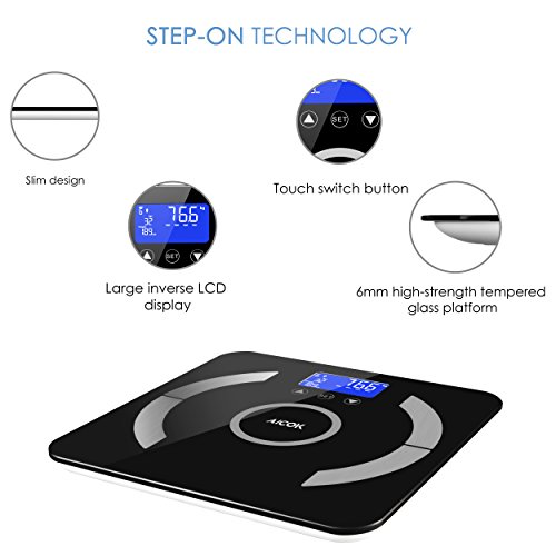 Aicok Digital Body Fat Scale, Bathroom Scale, Digital Weight Scale with Step-On Technology, Tempered glass, Measures Weight, Body Fat, Water, Muscle,...