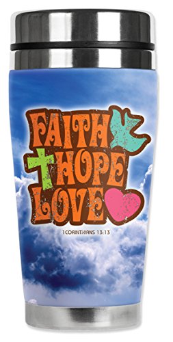 Mugzie 404-MAX "Faith, Hope, Love" Stainless Steel Travel Mug with Insulated Wetsuit Cover, 20 oz, Black