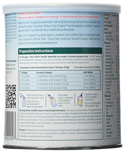 -. Feature : Pack of six, 12.7 ounce (Total of 76.2 ounce) / Suitable for babies who have Gluten or Corn allergies / Contains higher levels of essential fatty acids that the human body converts to DHA and ARA / Organic is your assurance the product does not use any genetically modified ingreidents / Organic also means the milk is derived from dairy cows that are not given artificial growth hormone, steroids or antibiotics