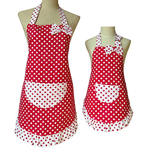 Mommy and Me Matching Retro Polka Dot Apron Set of 2 Mother Daughter (Red)