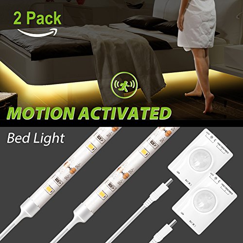 Motion Activated Bed Light, Megulla Motion Sensor LED Night Light -39in, USB Rechargeable Battery, Stick Anywhere, Automatic Shut Off Timer- for Baby's Room, Pantry and Stairs -2Pack, Warm White