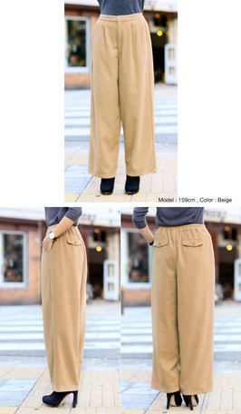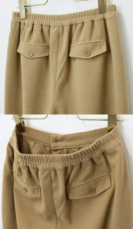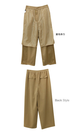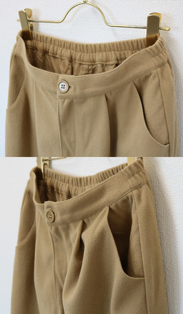 フロントボタンあり、後ろウエストはゴム入り仕様。