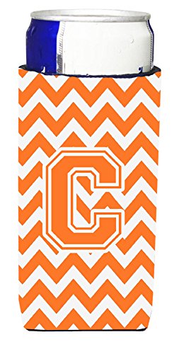 Letter C Chevron Orange and White Ultra Beverage Insulators for slim cans CJ1046-CMUK