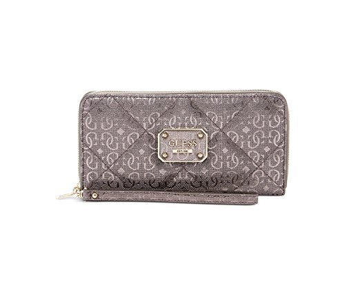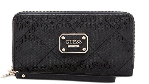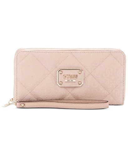 Grab hold of signature shine with this GUESS versatile zip around wallet, featuring sleek organization and a bonus wrist strap for carrying solo.