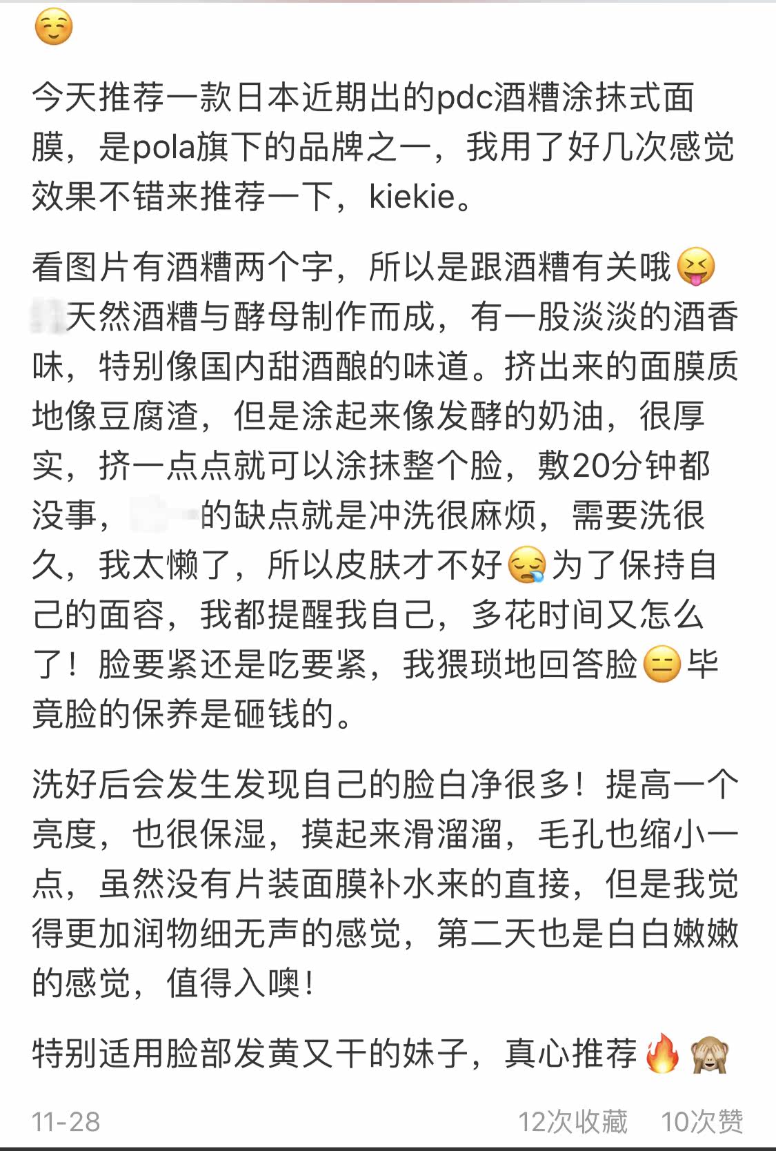 这款酒粕小红书上已经po疯了,很多美容美妆博主都在推荐!效果是真的好~~简直是黄皮干皮妹子的救星!能够有效的改善肤色暗沉、皮肤暗黄无光,而且收毛孔有琦*效哦哈哈哈哈哈哈