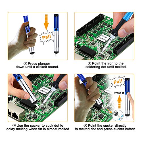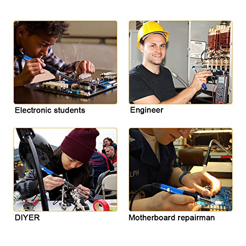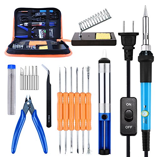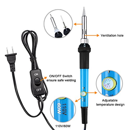 - SOLDERING IRON KIT: Comes with Soldering Iron, Solder sucker, Tin wire tube, stand with sponge, tweezers, scissors, 5 soldering tips and 6 aid tips to meet all your soldering project needs