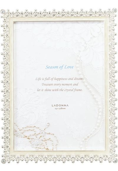 繊細で可憐。まるで上品にドレスアップした花嫁の装いのような美しいフレームです。四隅には大粒のクリスタルが施されています。 |