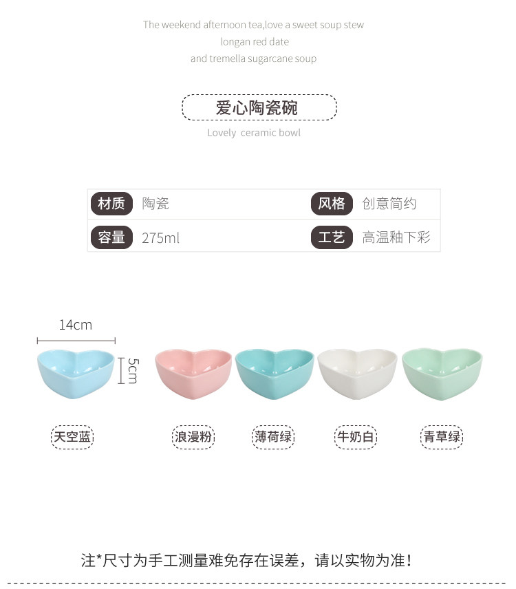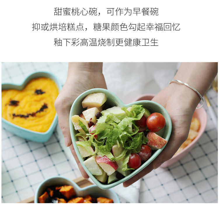 创意陶瓷可爱早餐碗家用桃心甜品水果麦片碗