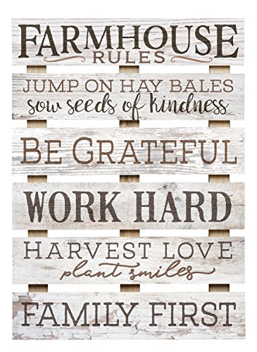 Farmhouse Rules Grateful Work Hard Love 17 x 24 Inch Solid Pine Wood Skid Wall Plaque Sign