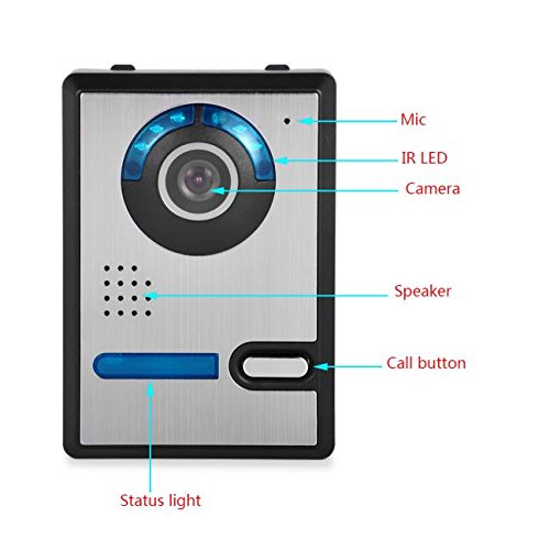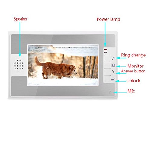 -. Feature : 7" color TFT LCD without radiation, low power consumption and high definition. / Aluminum alloy panel of indoor unit, fashionable and luxury. Little rain and oxidation-proof for the durable aluminum alloy outdoor unit. / Dual-way Intercom and Indoor Monitoring. It allows you to see, hear, and speak to the visitor at your door, you can answer the door in complete safety and comfort. Also, you can see what's going on outside by press monitoring button. / Electric Door Release: No need to go to the door to unlock for your guest, just need to press unlock button, but you need to purchase the Electrical lock, the wireless unlock control only supports power on unlock mode. / LEDs for Night Vision: Advanced infrared-assisted lighting features, enables you to identify the visitors even during night time. Clear night vision can capture image in low-illumination environment.