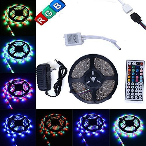 Chiefmax 5M/16.4 Ft SMD 3528 RGB 300 LED Color Changing Kit with Flexible Strip Light+44 Key IR Remote Control+ Power Supply