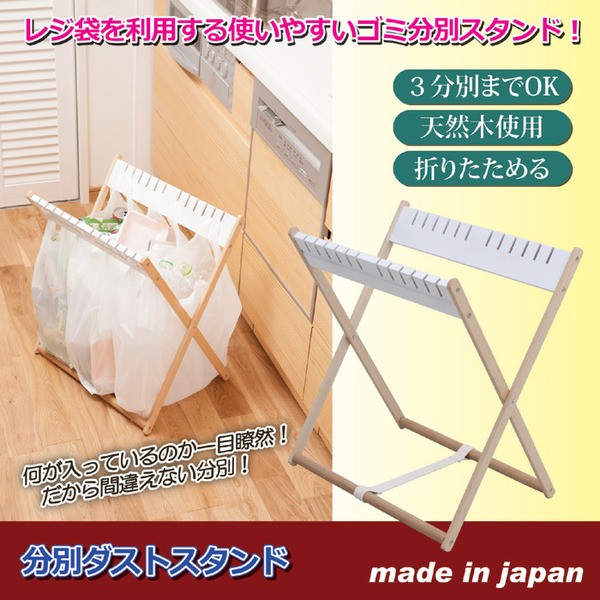 【商品名】折りたたみゴミストッカー/分別ダストスタンド 木製 日本製 (室内/屋外/アウトドア)