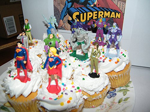 Superman Deluxe Cake Toppers Cupcake Decorations Set of 13 Figures with Supergirl, Clark Kent, Jimmy Olsen, Doomsday. Lex Luthor and Many More!