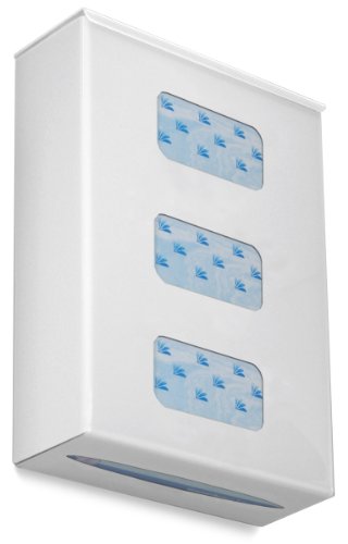 TrippNT 52867 Styrene Plastic Ultimate Plain Triple Dual Dispensing Glove Holder, 10" Width x 15" Height x 4" Depth, White
