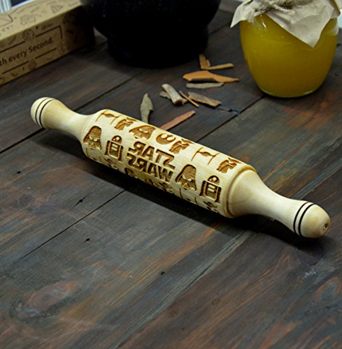 Embossing Rolling Pin wood engraved Star wars gift idea for Baking and Cookies 11.8" inch Length Star Wars design by Enjoy the wood