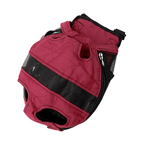 -. Feature : Breathable mesh design: Good soft material quality, breathable mesh ,comfortable clinging to your body, make the center of gravity is stable . / The neck elastic design :The neck elastic can adjust the size according to the dog's neck circumference, this design can prevent the dog climbed out of the bag. / On both sides of the zipper and Velcro: with zipper on both sides and guide design, convenient dogs wear, take off. / Straps design: complete hands free, without any burden, whether to ride a bike, traveling ,shopping and walking. / Lightweight and Convenient The whole carrier weights 8 Ounces, you can carry it at front or at back for your convenience.