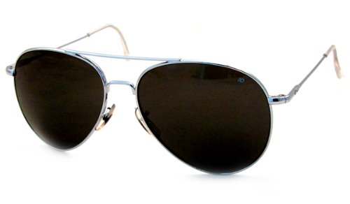 AO Flight Gear General Sunglasses, Wire Spatula, Silver Frame, True Color Gray Glass Lens, 52mm,