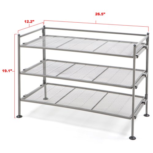 - Feature : Dimensions 26.5-Inch W by 12.2-Inch DÂ by 19.1-Inch H / Units are stackable and connects horizontally (requires 2 or more units) / Finish: Satin Pewter / Folds flat for easy storage with an easy, no tool assembly / Patents Pending