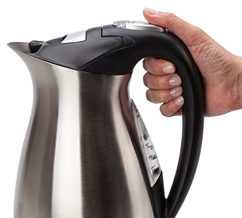 Stainless-steel electric kettle quickly boils up to 1-1/2 liters of water