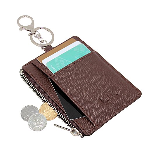 -. Brand : boshiho -. Department : mens -. Feature : Genuine leather material, made from soft, flexible and durable saffiano leather / Coin change purse with a key ring attached for easily and safely carrying your key / Front ID window with clear cover features visibility and protection. Back 4 card slots for easy management and access / Side zipper pocket for coin, cash, credit cards and more / Dimension: 4.3 x 3.3 x 0.2 inch; Perfect to be used in conjunction with your wallet or great for single use -. PackageQuantity : 1 -. ProductGroup : Shoes -. ProductTypeName : SHOE_ACCESSORY -. Size : 4.3 x 3.3 x 0.2 inch -. Title : Boshiho Saffiano Leather Credit Card Holder Coin Change Purse with Key Ring Keychain
