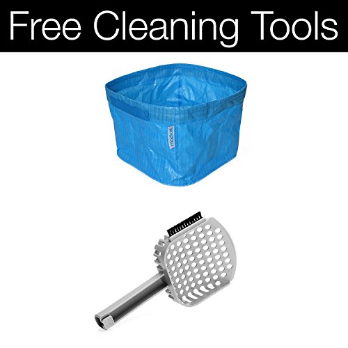Every detail of this patented design has been thoughtfully considered. The locking lid acts as a walk-off mat keeping litter off your floors while keeping small dogs from enjoying the "treats" inside. An ergonomic scoop with incorporated brush stows neatly on the side and the reusable litter liner is friendly to your wallet and the environment. 0