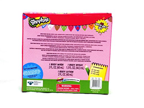 -. Feature : Shopkins Bath Gift Set / Apple Blossom Body Wash / Strawberry Kiss Scented Body Spray / Cupcake Scented Body Lotion