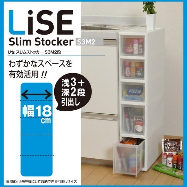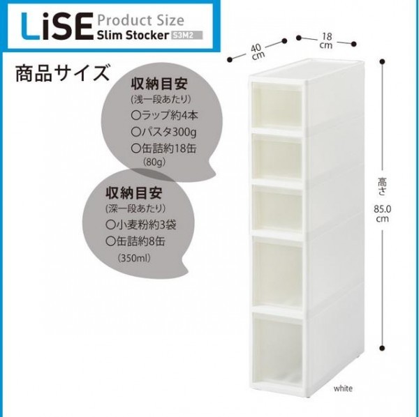 | サイズ | 外寸/(約)幅18×奥行40×高さ85cm、引出し/S:(約)幅12.7×奥行36×高さ11.4cm、M:(約)幅12.6×奥行36×高さ18.2cm 個装サイズ:20×42×88cm |