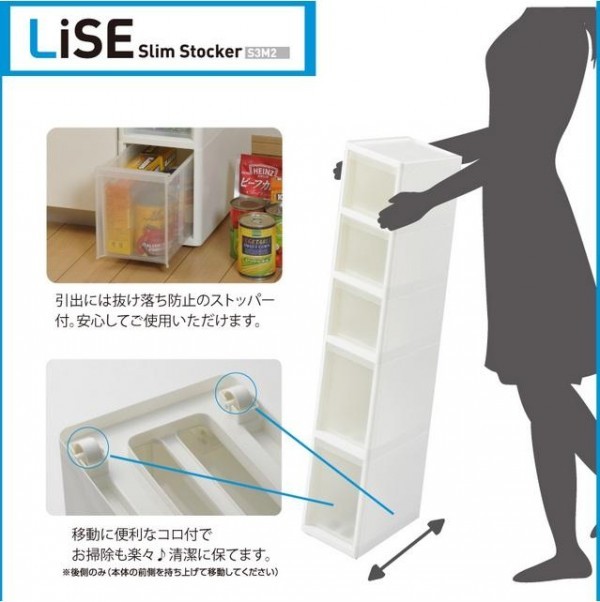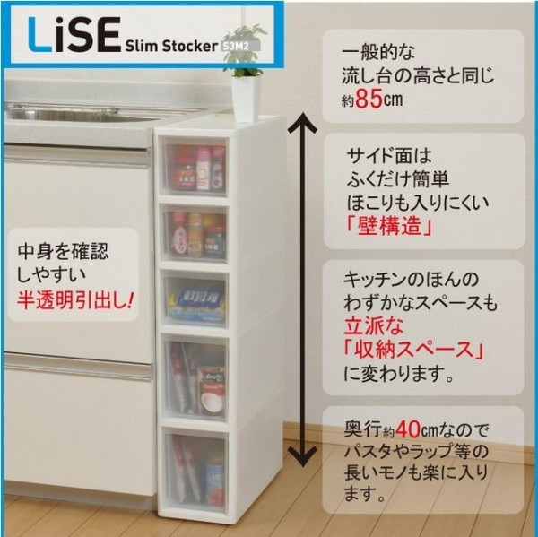 | 仕様 | 完成品 袋入り 本体底面コロ2個付 引出し抜け落ち防止ストッパー付 耐荷重(天板:1kg、引き出し1段あたり:S2kg、M3kg) |