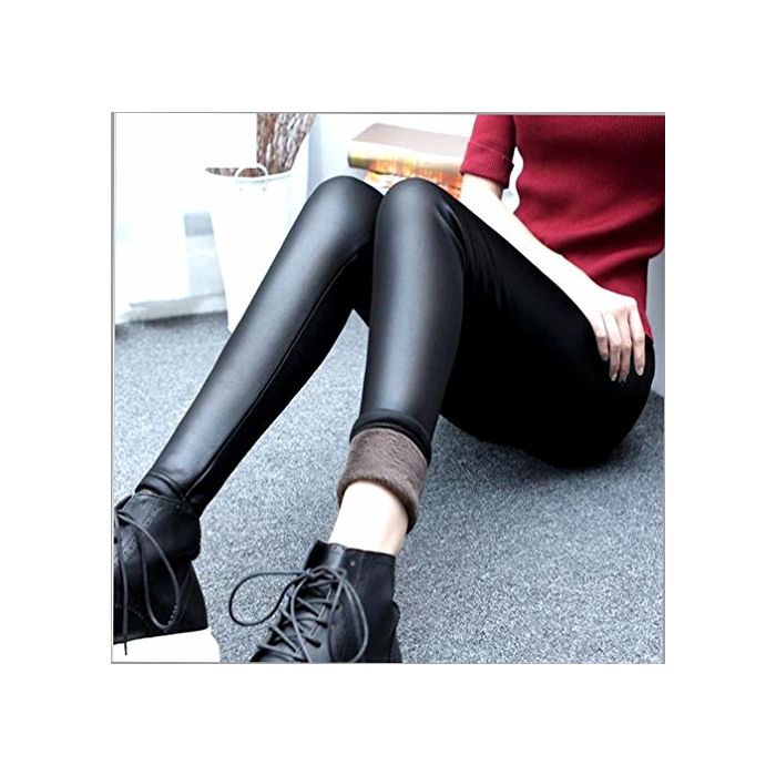 (졸리 K O) Joli-Ko 레깅스 뒤기모 페이크 레더 레깅스 스패츠(Spats) 검정 크 레깅스 팬츠 레이디스 (블랙/XL)