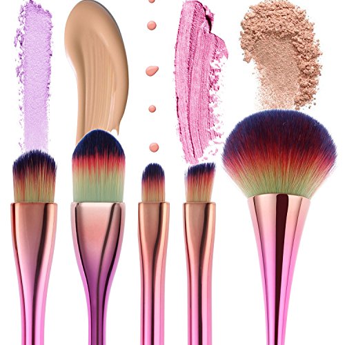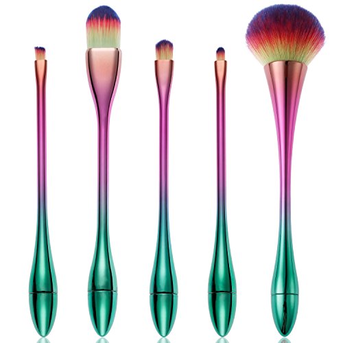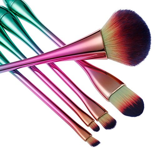 RAINBOW METALLIC Makeup Brush Set (Metallic Rainbow Synthetic Brushes) Set of 5
