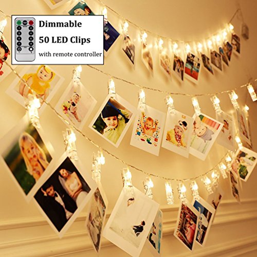 Dimmable 50 LEDs 17 Feet Photo Clips String Lights with Remote Controller & Timer Function, Decobree 8 Modes Fairy Lights for Hanging Photos Pictures Cards Memos, Ideal Gift