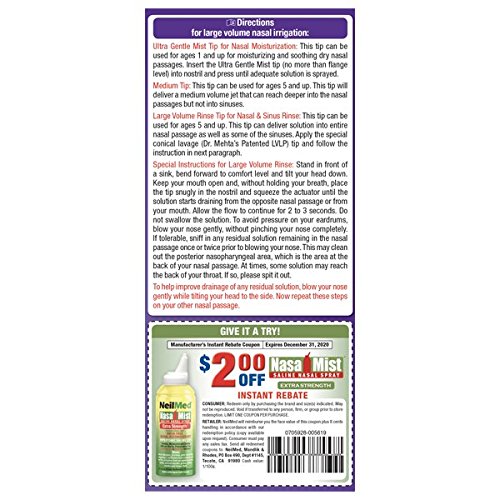 NasaMist Isotonic Saline Spray USA - for Allergy and Sinus Sufferers, 2.53 oz,(NeilMed)