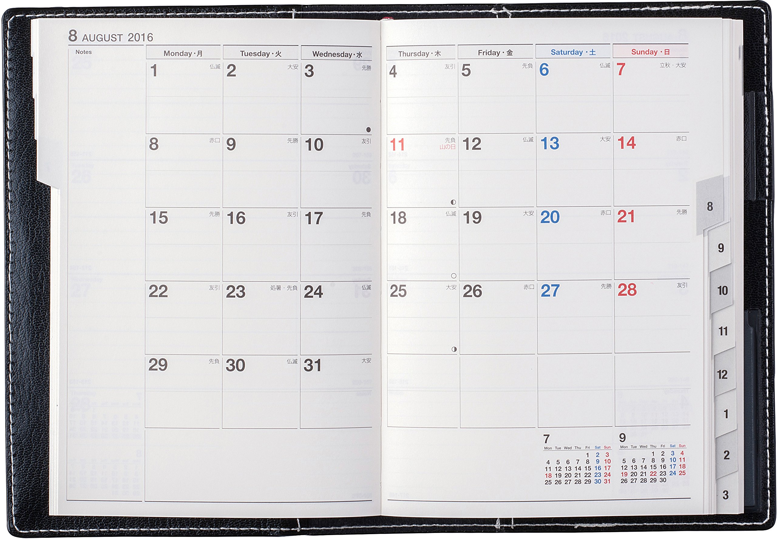 One row at the left is in the free memo field and the lower right has the calendar of the previous month next month.