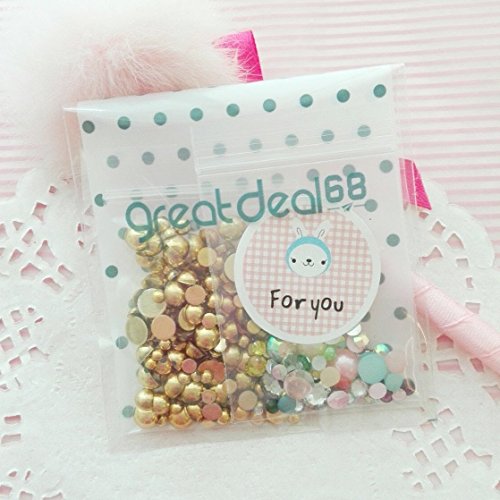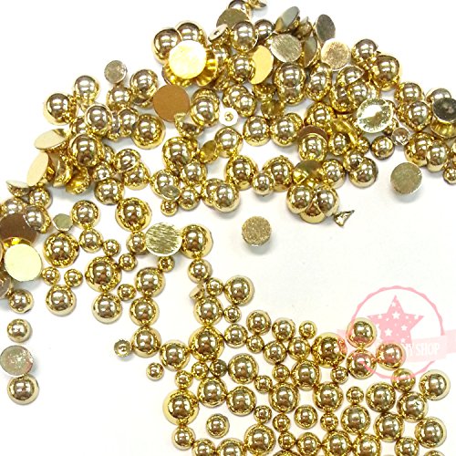 200 pcs 3mm - 6mm Gold acrylic faux round Shiny Half Pearls Flatback Mix SIZE *ship with FREE GIFT from GreatDeal68*